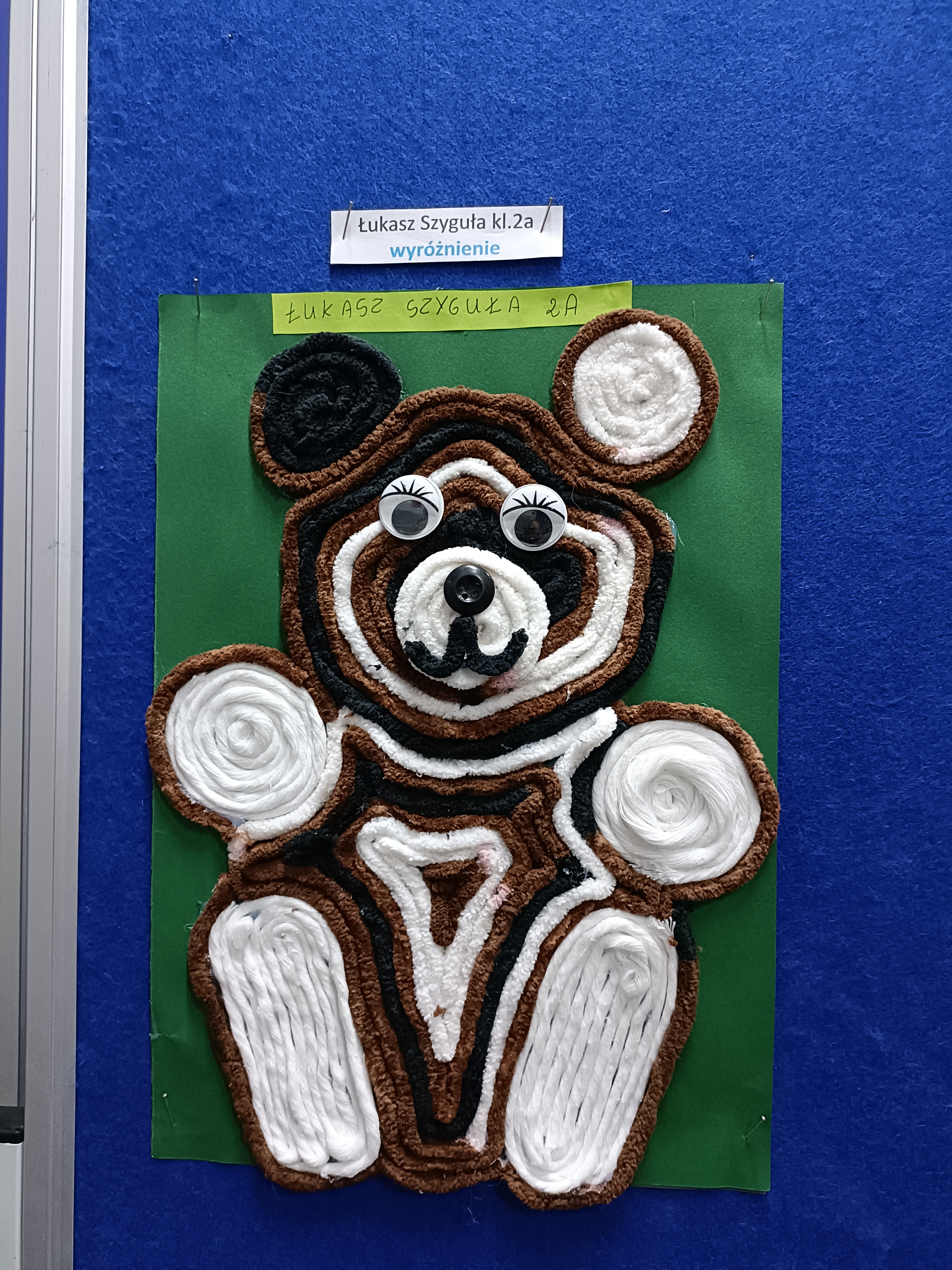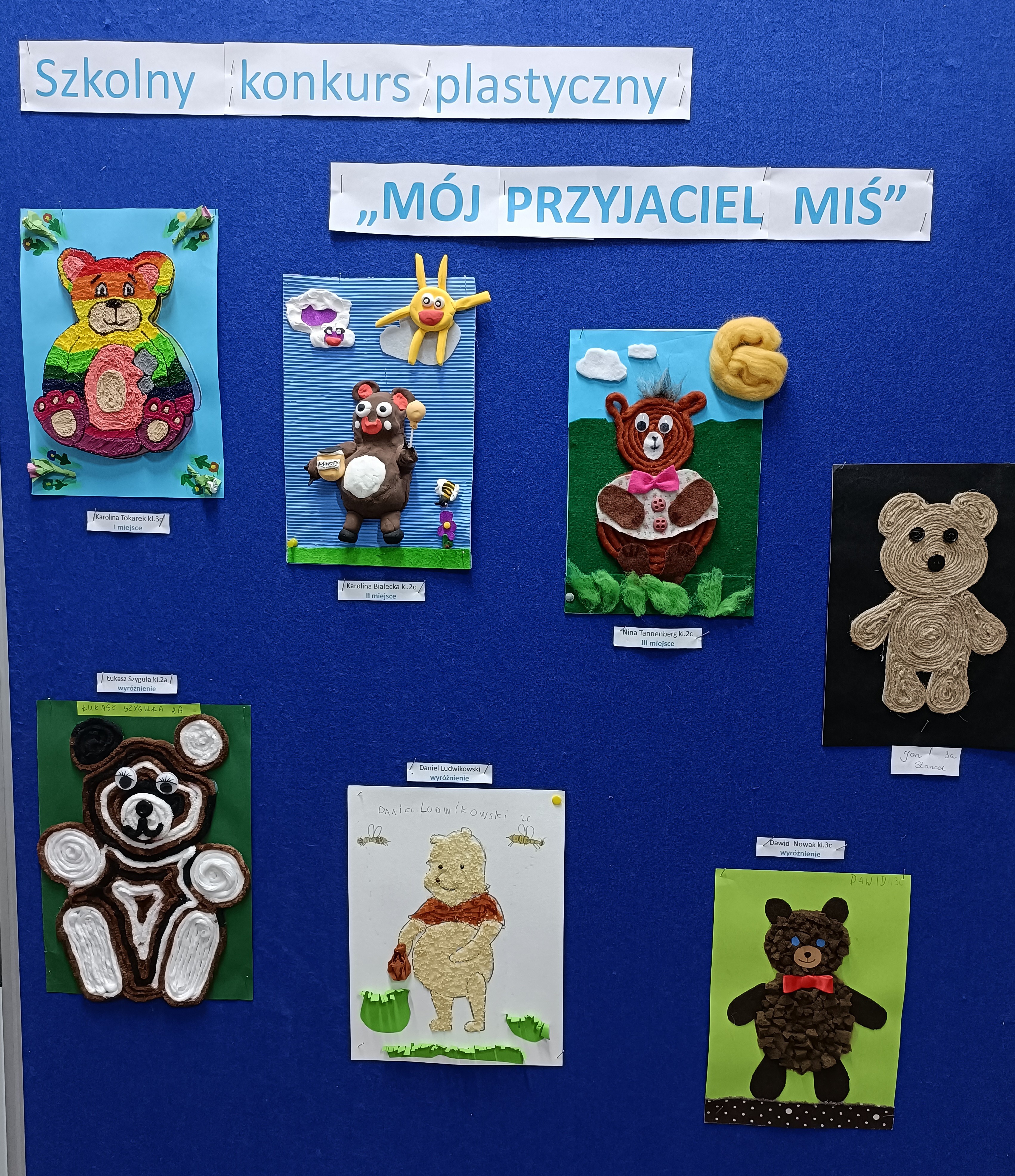 25 listopada obchodzimy Światowy Dzień Pluszowego Misia. Z tej okazji został ogłoszony konkurs plastyczny pt. “Mój przyjaciel miś”. Do konkursu zostało zgłoszonych wiele ciekawych i estetycznie wykonanych prac. Jury ostatecznie wybrało prace następujących uczniów: