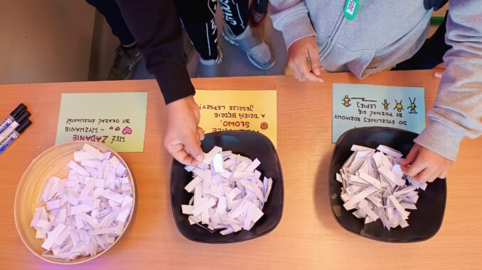 Samorząd Uczniowski zorganizował wyjątkową akcję pod hasłem „15 minut życzliwości”, będącą częścią kampanii „Szkoła bez przemocy: Pozytywni mają MOC!”. Podczas dwóch długich przerw uczniowie odwiedzali salę nr 42, gdzie czekały na nich trzy miski z karteczkami. Wylosowane zadania zachęcały do drobnych gestów dobra – można było trafić na zadanie do wykonaniamiłe słowo lub temat do rozmowy.