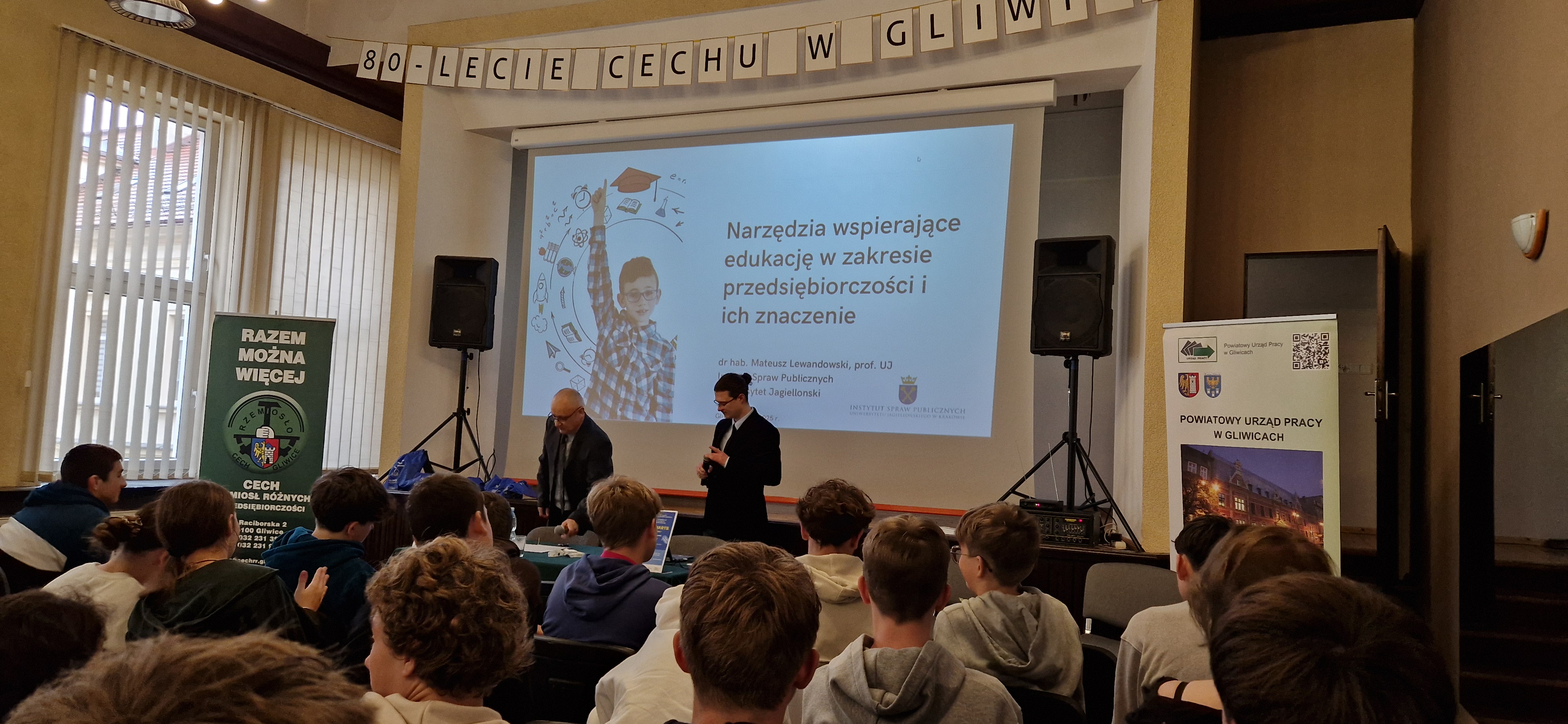 W programie znalazły się wykłady przedstawicielki Powiatowego Urzędu Pracy, doradcy zawodowego z PPP oraz Dyrektora Biura Cechu. Uczniowie poznali kluczowe kompetencje zawodowe, aktualne trendy na rynku pracy i możliwości wsparcia przy wyborze szkoły branżowej. Profesor UJ, dr hab. Mateusz Lewandowski, przybliżył temat przedsiębiorczości jako elementu codziennego życia. Na zakończenie młodzież odwiedziła stoiska zawodowe.