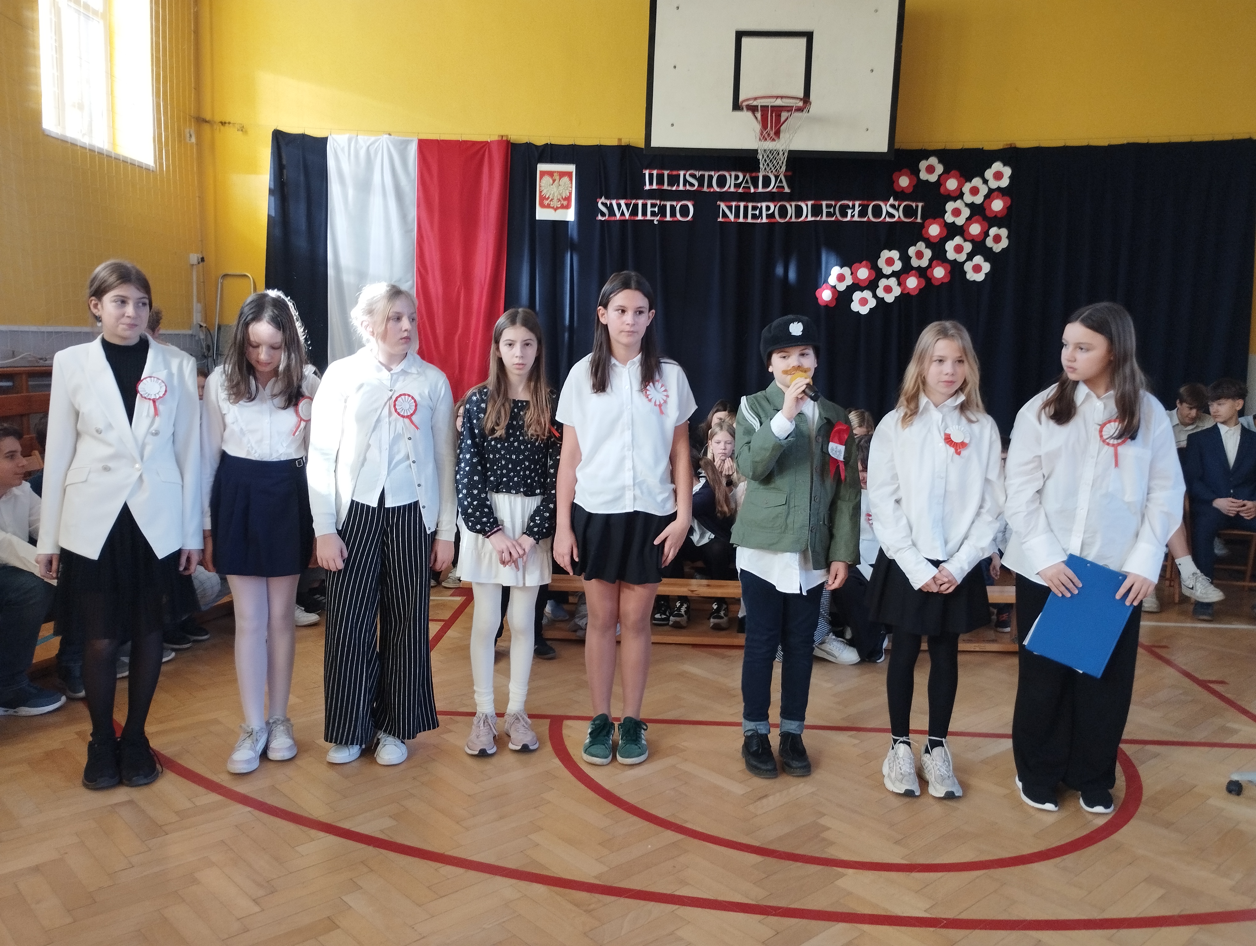 W piątek, 7 listopada, w naszej szkole odbyła się uroczysta akademia z okazji Narodowego Święta Niepodległości. Uczniowie przygotowali piękny program artystyczny, który przypomniał wszystkim drogę Polski do wolności. Występ przeplatany był wierszami, pieśniami patriotycznymi i wzruszającymi fragmentami narracji. Był to wyjątkowy dzień, pełen refleksji, dumy i radości z bycia Polakiem. Uroczystość wprowadziła wszystkich w patriotyczny nastrój i była piękną lekcją historii oraz miłości do Ojczyzny.