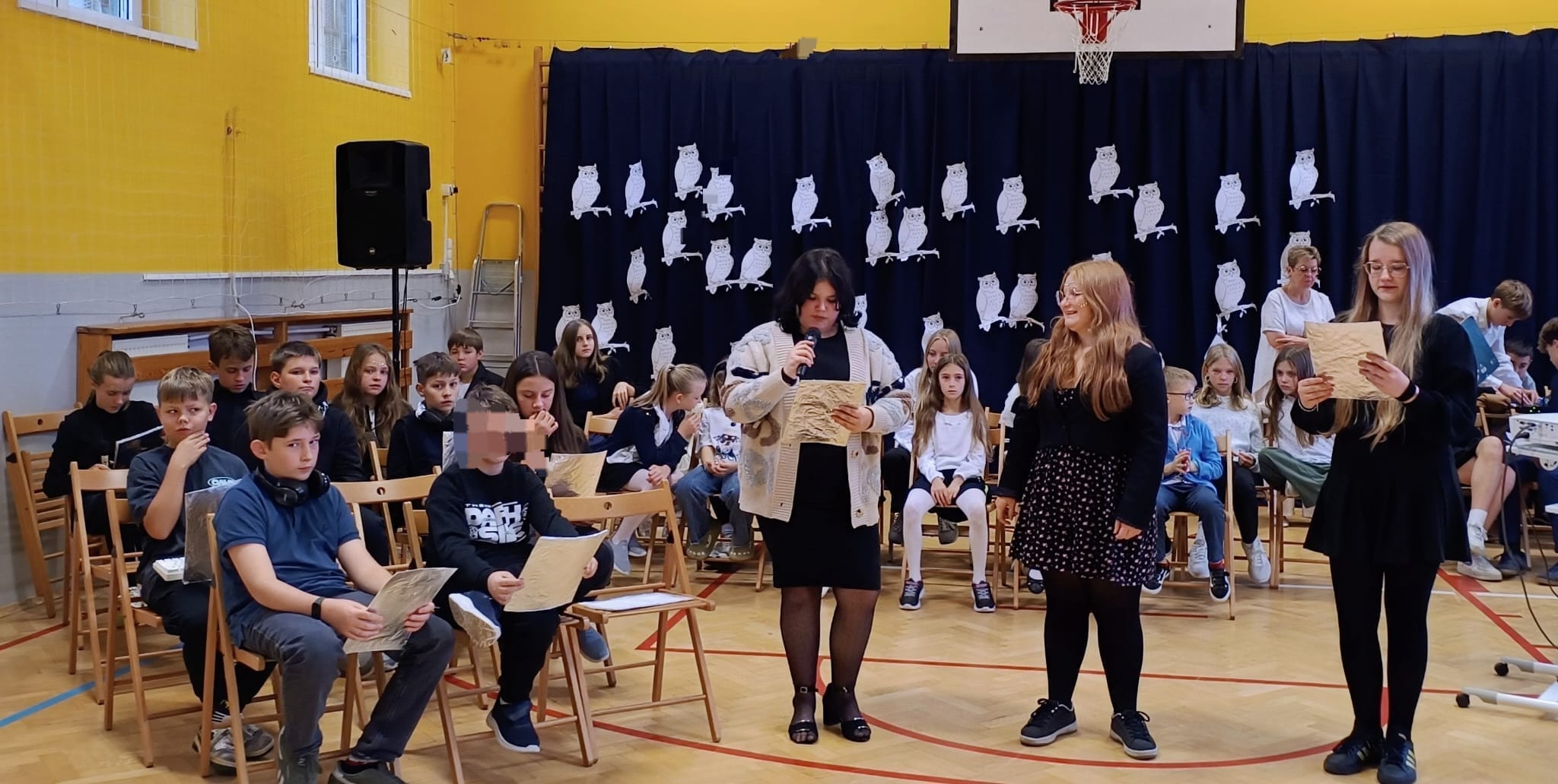 Podczas uroczystości występy muzyczno-taneczne przygotowali: Tosia Augustyn i Ania Skorupska, Hania Partyka, Antonia Skłodowska, szkolny chór oraz grupa taneczna SALAKE w składzie: Marta Cyrankiewicz, Natalia i Olga Philipczyk oraz Karolina Tokarek. Klasa 6b z kolei przeniosła nas w odległą przyszłość prezentując scenkę, w której nauczycieli zastąpiła sztuczna inteligencja. Ich występy wypełniły salę radością i wdzięcznością.