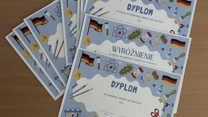 W naszej szkole odbył się konkurs plastyczno-językowy „Berufe auf Deutsch”, zorganizowany we współpracy z doradztwem zawodowym w ramach Wewnątrzszkolnego Systemu Doradztwa Zawodowego (WSDZ). Celem wydarzenia było połączenie kreatywności uczniów z praktyczną nauką słownictwa dotyczącego zawodów w języku niemieckim oraz pogłębienie świadomości w zakresie planowania własnej ścieżki edukacyjno-zawodowej.