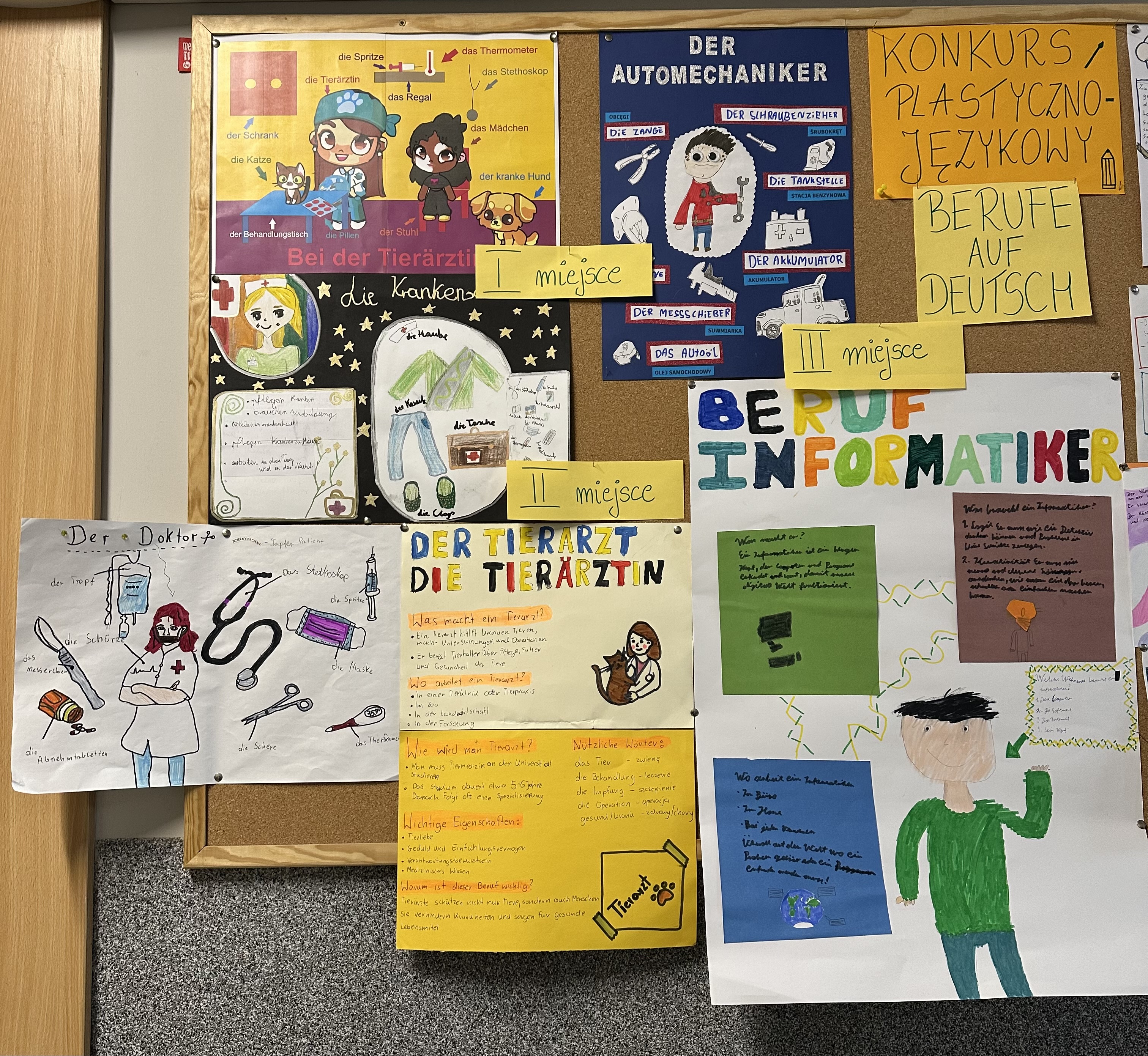 Uczniowie stworzyli oryginalne i pomysłowe prace plastyczne przedstawiające różnorodne profesje, opisane w języku niemieckim. Dzięki temu rozwijali kompetencje językowe, poznawali świat zawodów i swoje predyspozycje, a także zdobywali wiedzę przydatną w dalszym planowaniu kariery.