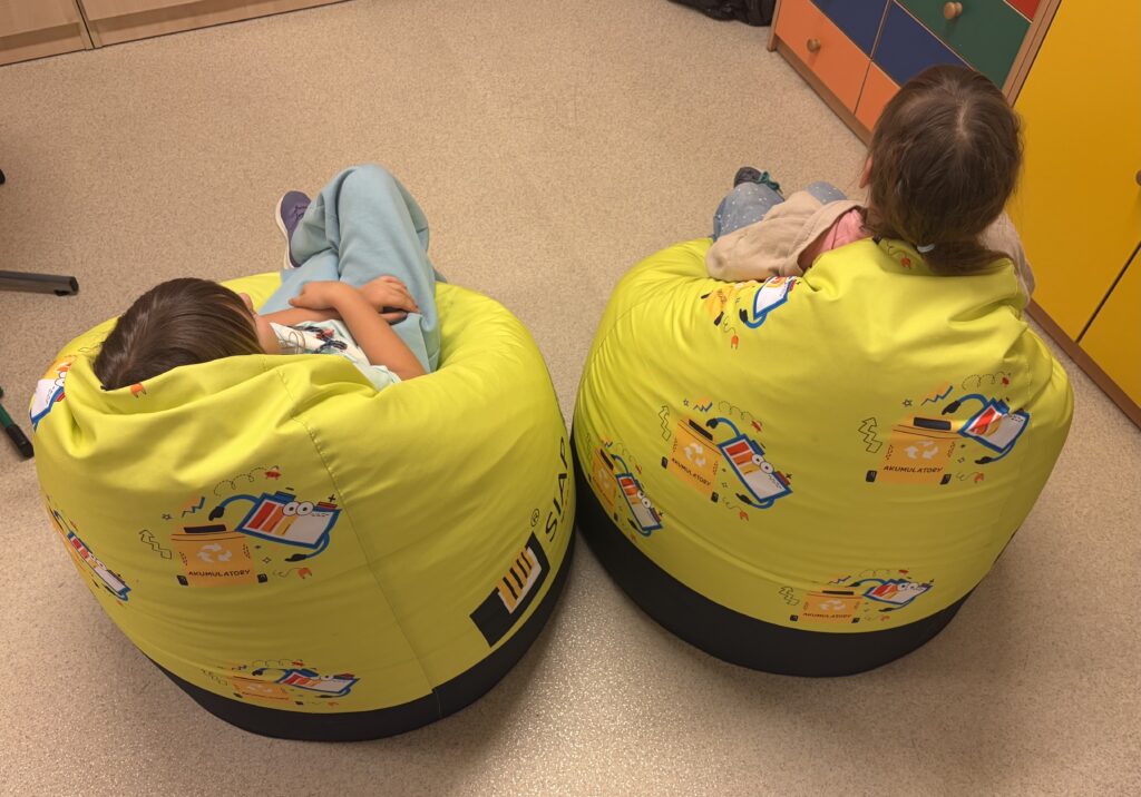 Otrzymane wyposażenie sprawiło dzieciom ogromną radość, a jednocześnie znacząco uatrakcyjniło strefę wypoczynku w naszej placówce. Pufy podniosły komfort codziennego funkcjonowania uczniów oraz znalazły zastosowanie w gabinetach terapeutycznych, wspierając realizację działań edukacyjnych i terapeutycznych w przyjaznych warunkach.